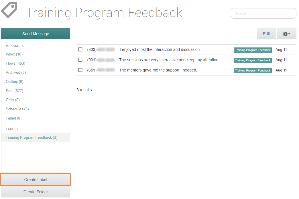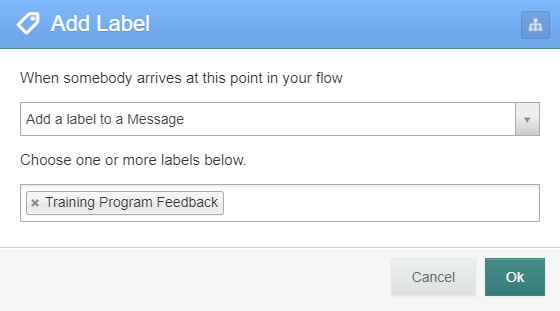 Use the “Add Label” action to label incoming messages handled by your workflow. Whereas sorting contacts into groups allows you to segment contacts based on their responses, labeling incoming messages allows you to isolate responses to a specific question.