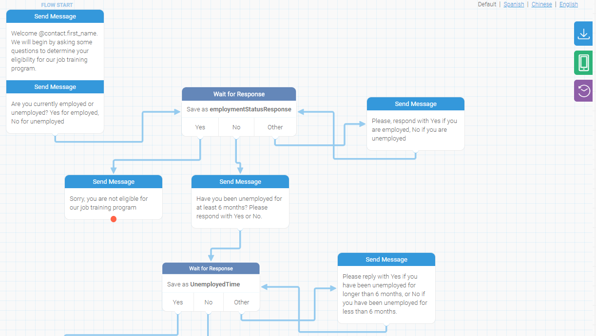 Once you've set your account's primary and secondary languages, you can edit your flows to switch between multiple languages depending on your contacts' language preferences. You can create multi-language flows by following these steps: